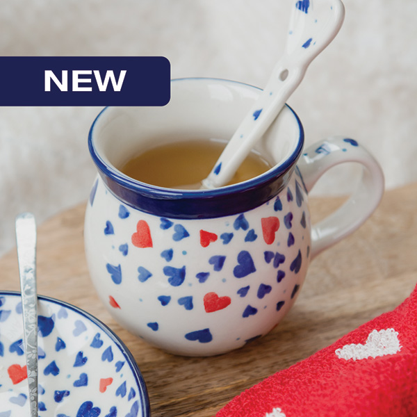 Dancing hearts in red and blue that perfectly match the other Bunzlau Castle decors. Discover the collection now and bring love into your home.
